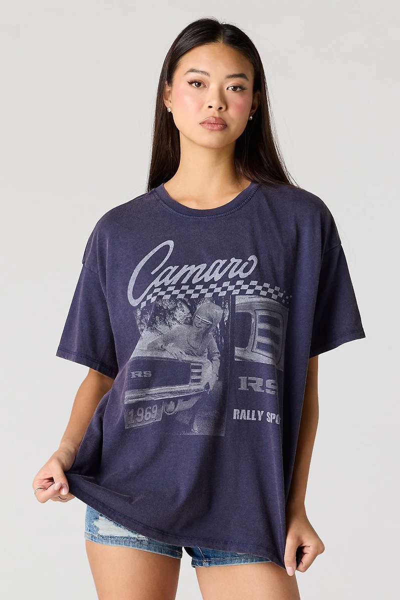 T-shirt de coupe garçonne délavé à imprimé Camaro