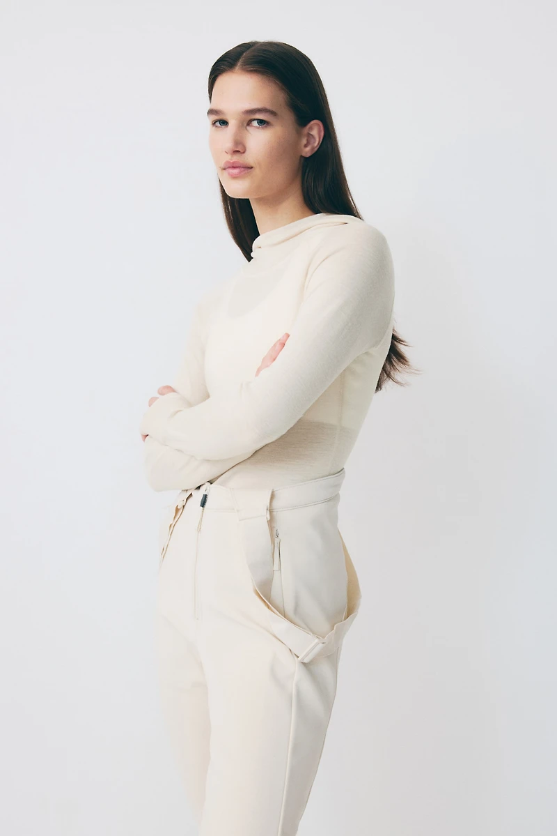 T-shirt de sport en jersey de laine chaud et extensible avec coutures plates pour plus de confort. Coupe près du corps avec capuchon et longues manches raglan.