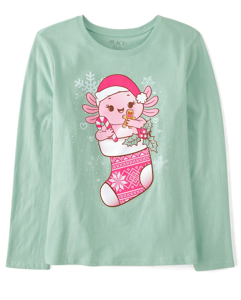 T-shirt graphique pour fille avec motif bas de Noël Axolotl