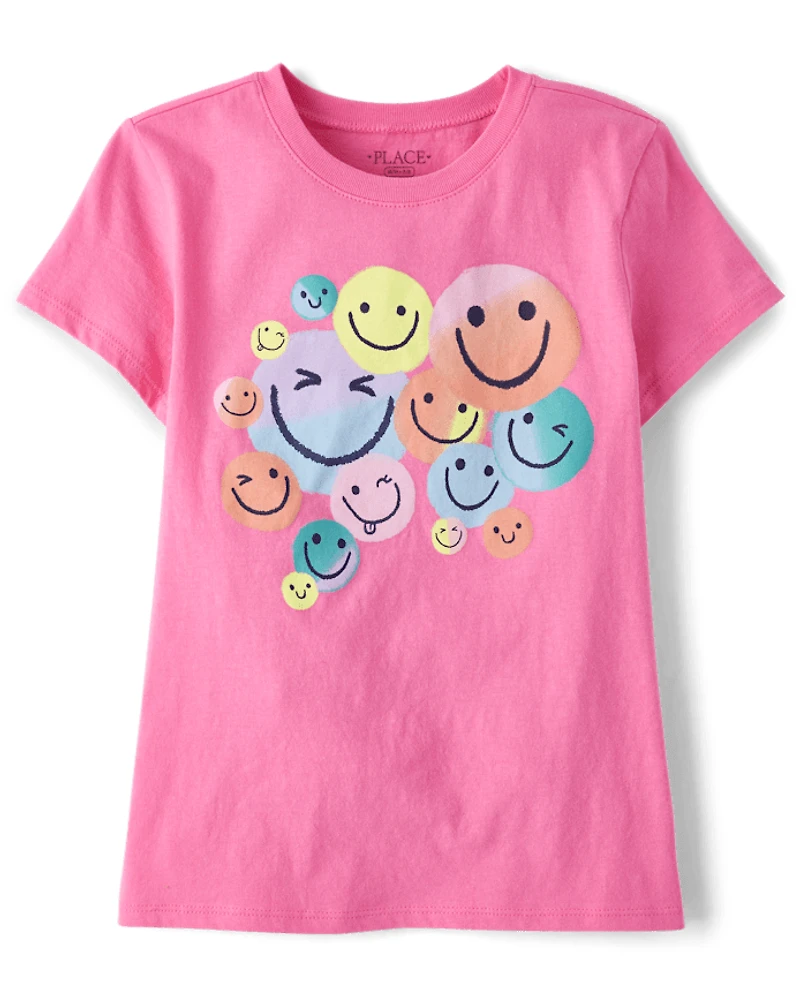 T-shirt graphique visage souriant pour filles
