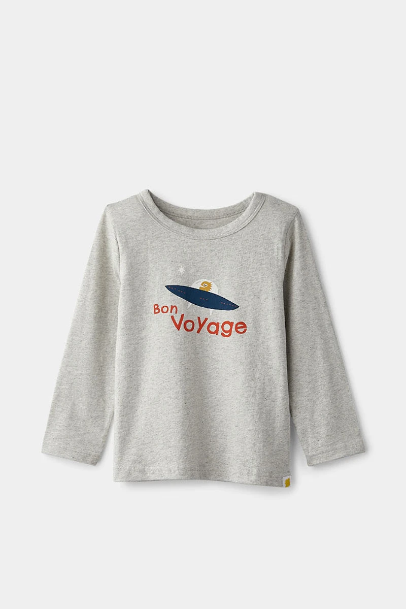 Ce t-shirt à manches longues en coton jersey 100 % biologique offre une coupe décontractée pour plus de confort et de facilité de mouvement. Il dispose de charmants imprimés sur le devant faits avec une encre non toxique à base d'eau qui ne pique pas la peau. Une conception réfléchie axée sur la durabilité.