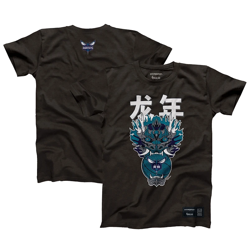 T-shirt unisexe Hyperfly Heather Black Charlotte Hornets Année du Dragon Collection Nouvel An lunaire