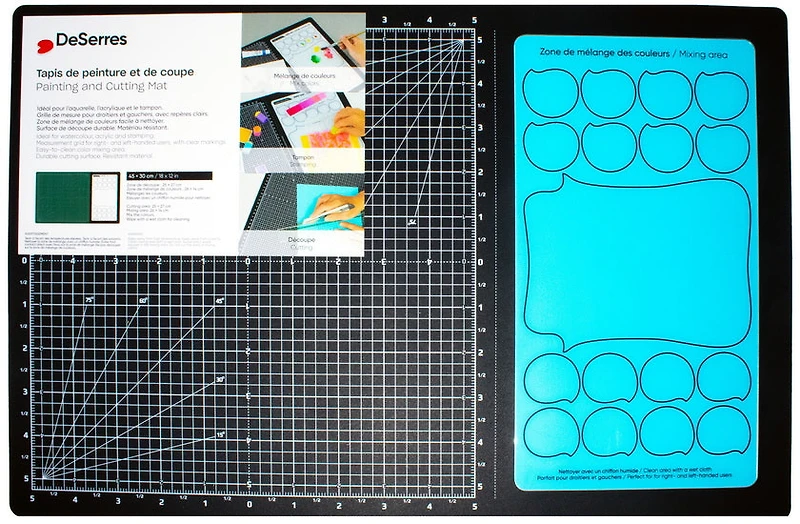 Ce tapis de coupe et de peinture DeSerres stabilise vos matériaux pour des découpes précises et sécurisées. Sa surface aimantée maintient papier, tissu ou carton en place, tandis que le quadrillage facilite les mesures et les angles. Vous travaillez avec confiance, sans glissement ni erreur. Robuste et pratique, ce tapis protège votre surface de travail et améliore la qualité de chaque projet créatif. Optez pour un outil fiable qui simplifie vos réalisations et optimise vos résultats!