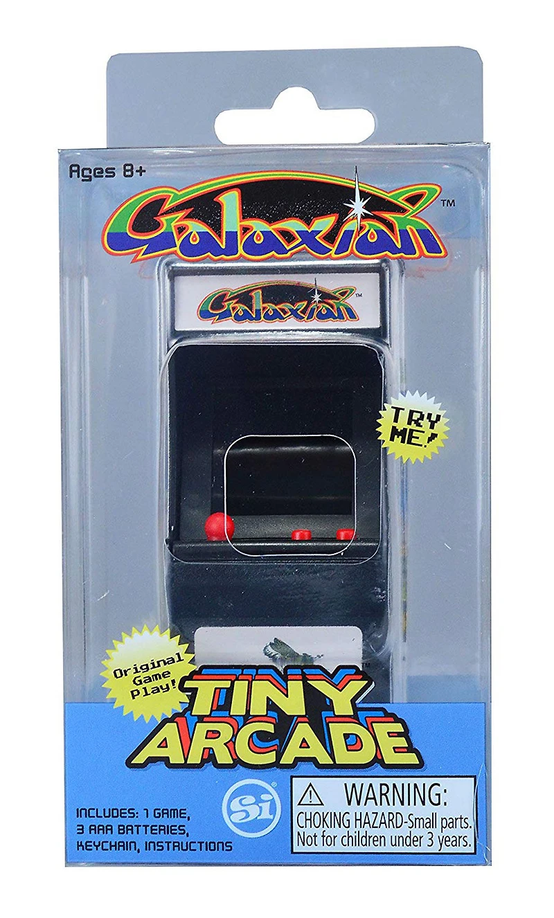 L'action est INTENSE dans ce jeu en format réduit entièrement fonctionnel - une expérience de jeu authentique Galaxian! Tout en couleur, avec une haute résolution graphique, des effets sonores authentiques et une enseigne lumineuse. Utilise la manette pour contrôler le vaisseau. Tire sur les armées extraterrestres menaçantes. Élimine une cohorte d'attaquants et une autre apparaît - tu dois être rapide!