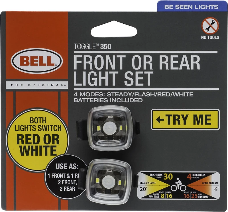 La conception unique du jeu de lumières Toggle 350 vous permet d'utiliser la lumière comme phare ou feu arrière! Vous pouvez les utiliser comme lumières traditionnelles ou utiliser deux feux arrière ou deux phares.