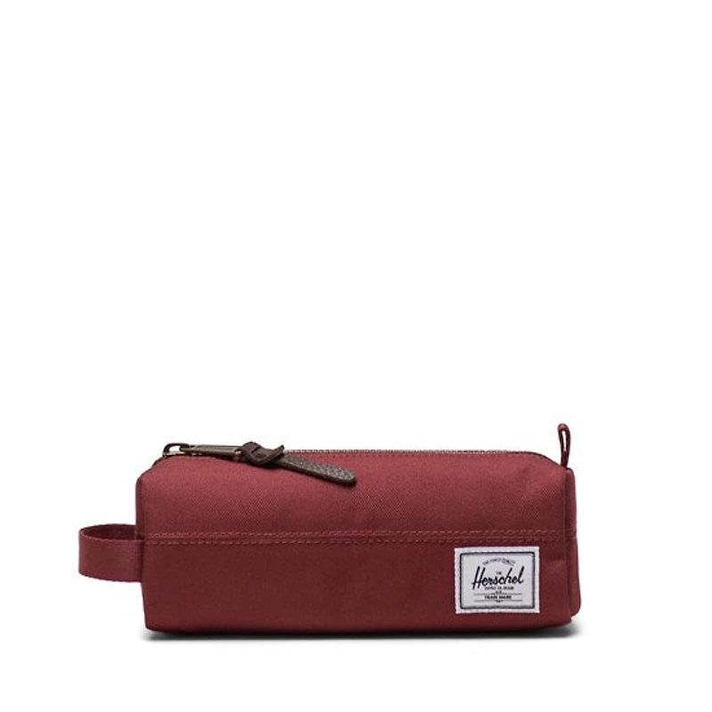 Classique, la trousse Settlement se distingue par sa fermeture à glissière métallique et sa poignée pratique. C’est la trousse idéale pour ranger vos crayons et autres petits accessoires. Spécifications techniques : doublure en tissu rayé, glissière métallique 8 pt avec tirette en cuir, étiquette tisséeVolume : 0,9 lDimensions : 7 x 20 x 6 cm (3 x 8 x 2,5 po)