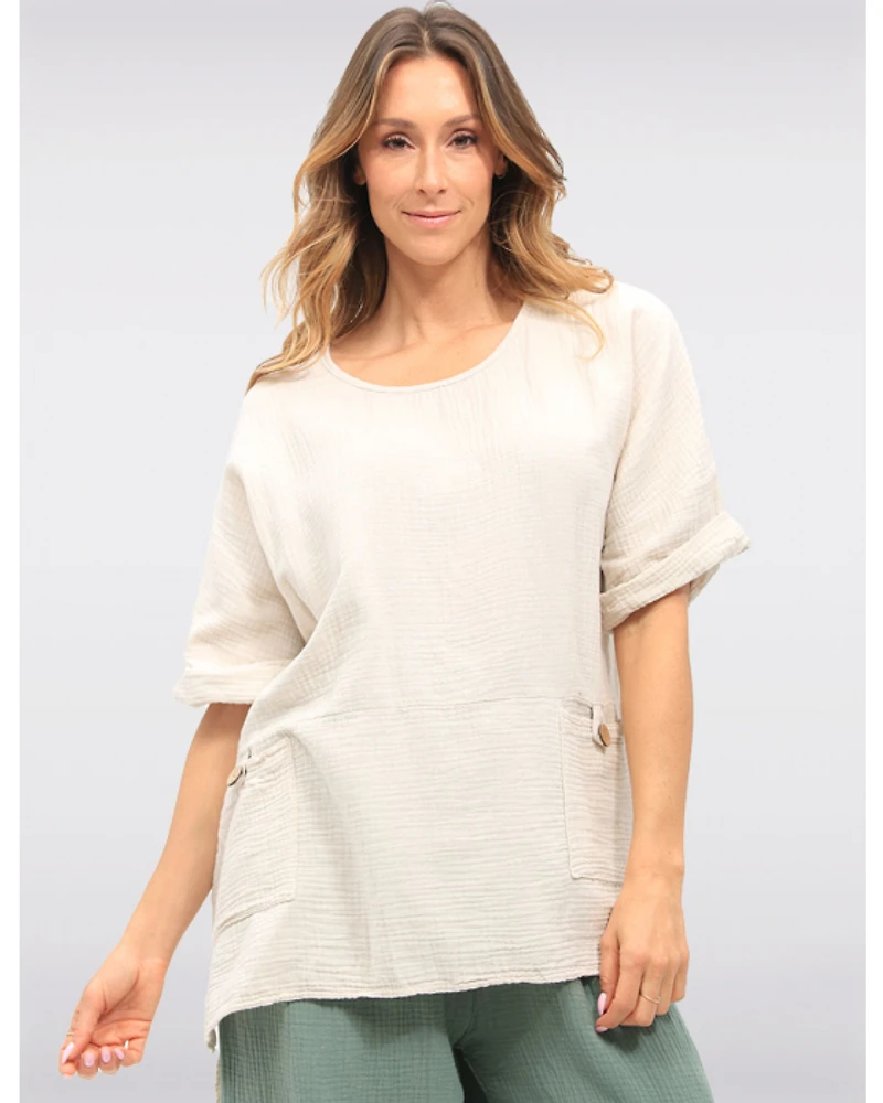 Tunique à Manches Courtes en Coton Texturé avec Poches Frontales par Froccella