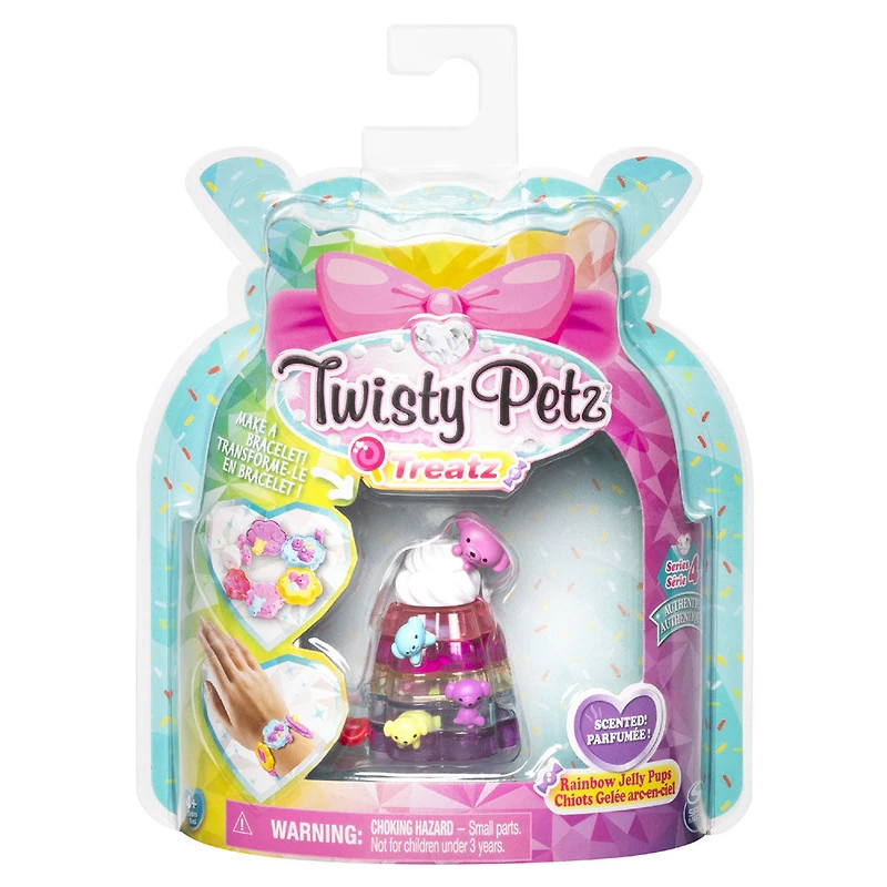Découvrez la douceur des Twisty Petz Treatz, le nouveau jouet à collectionner ! Les Twisty Petz Treatz sont de véritables friandises empilées qui se transforment en bracelet ! Collectionnez les Chiots Gelée arc-en-ciel, les Pandas Sushi, les Ours Hamburger, les Chatons Sandwich à la crème glacée et bien plus encore ! Chaque Twisty Petz Treatz coloré arbore un délicieux parfum et d'adorables détails de style kawaii. Transformez votre friandise empilée en bracelet en tirant simplement sur la tête et la queue. Lorsque vous désempilez votre Treatz, vous découvrirez de belles surprises sous les différentes couches ! Faites simplement tourner votre Treatz pour lui faire reprendre la forme de bracelet en empilant les couches. Collectionnez les 10 Treatz (vendus séparément) et ajoutez-les à votre collection Twisty Petz. Découvrez le côté sucré et salé des Twisty Petz avec les Twisty Treatz !