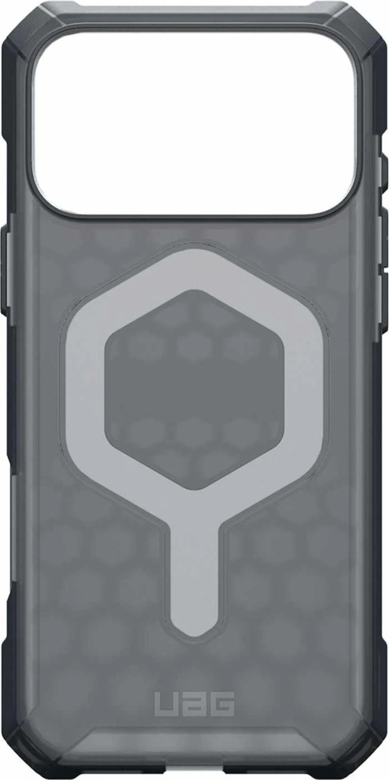 Urban Armor Gear (UAG) Essential Armor MagSafe Case for Apple iPhone 17 Pro Max This ultra-thin, lightweight phone case features a co-molded construction, delivering a sleek and comfortable feel in your hand. Designed for superior protection, it offers enhanced corner protection to guard against accidental drops and impacts. The raised camera bezel keeps your lenses safe from scratches, while the inner hex pattern boosts shock absorption, providing added defense against everyday bumps. Enjoy a satisfying click with every press, thanks to oversized tactile buttons that enhance your user experience. Product Features: Withstand drops up to 15 feet (4.6 meters), passes MIL-SPEC 810G-516.6 Translucent case with hexagon design for added style and sophistication Sleek, slim, everyday device protection Lightweight construction with an impact-resistant soft core for reliable protection Integrated lanyard anchor points for added security and convenience (lanyard not included) Works with MagSafe compatible wireless chargers and magnetic accessories Enhanced corner protection Protective screen surround Raised camera bezel Oversized tactile buttons for enhanced click-feel Limited Lifetime Warranty Eco Recyclable Packaging