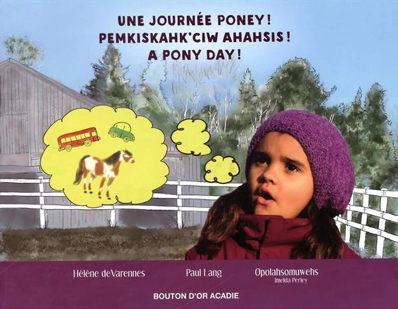 Joséphine regarde son grand-père et se demande s'il est sérieux. Lui qui aime tant rire ! Un poney n'a ni volant pour le conduire ni fauteuil pour s'y asseoir... Comment pourra-t-elle rester assise sur un poney et le guider jusqu'à l'étang ? La célèbre collection Wabanaki se transforme ! Composée de six contes traditionnels trilingues des Premières Nations de l'Est du Canada, la collection Wabanaki s'enrichit d'une première publication en langue wolastoqey. Ancré dans le présent, reflétant la réalité quotidienne des familles d'aujourd'hui, cet ouvrage s'inscrit dans le renouvèlement des relations entre communautés autochtone et allochtone, auquel Bouton d'or Acadie est fière de contribuer.