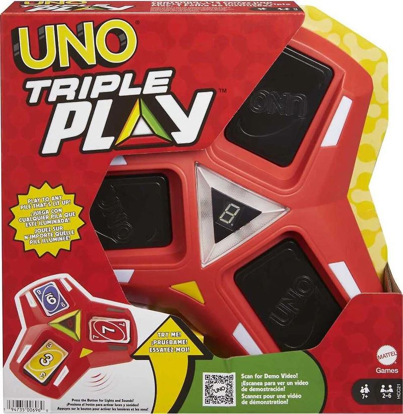 Découvrez UNO TriplePlay, une version trois fois plus amusante du célèbre jeu de cartes que l'on ne présente plus!