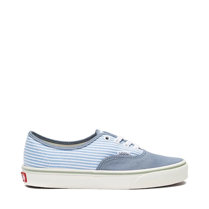 Keep it classic with a fresh twist in the Vans Authentic Stripes Skate Shoe in Glacial Slate. This low-profile staple features sturdy canvas uppers with a mix of solid and striped panels for a laid-back, coastal-inspired look. A lace-up front keeps the fit secure, while the cushioned footbed and signature waffle outsole deliver comfort and traction for everyday wear.