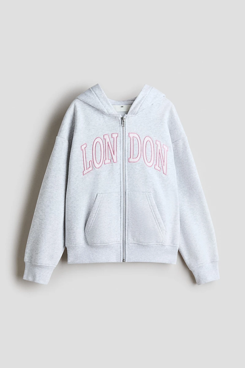Veste à capuche fermeture éclair avec broderie