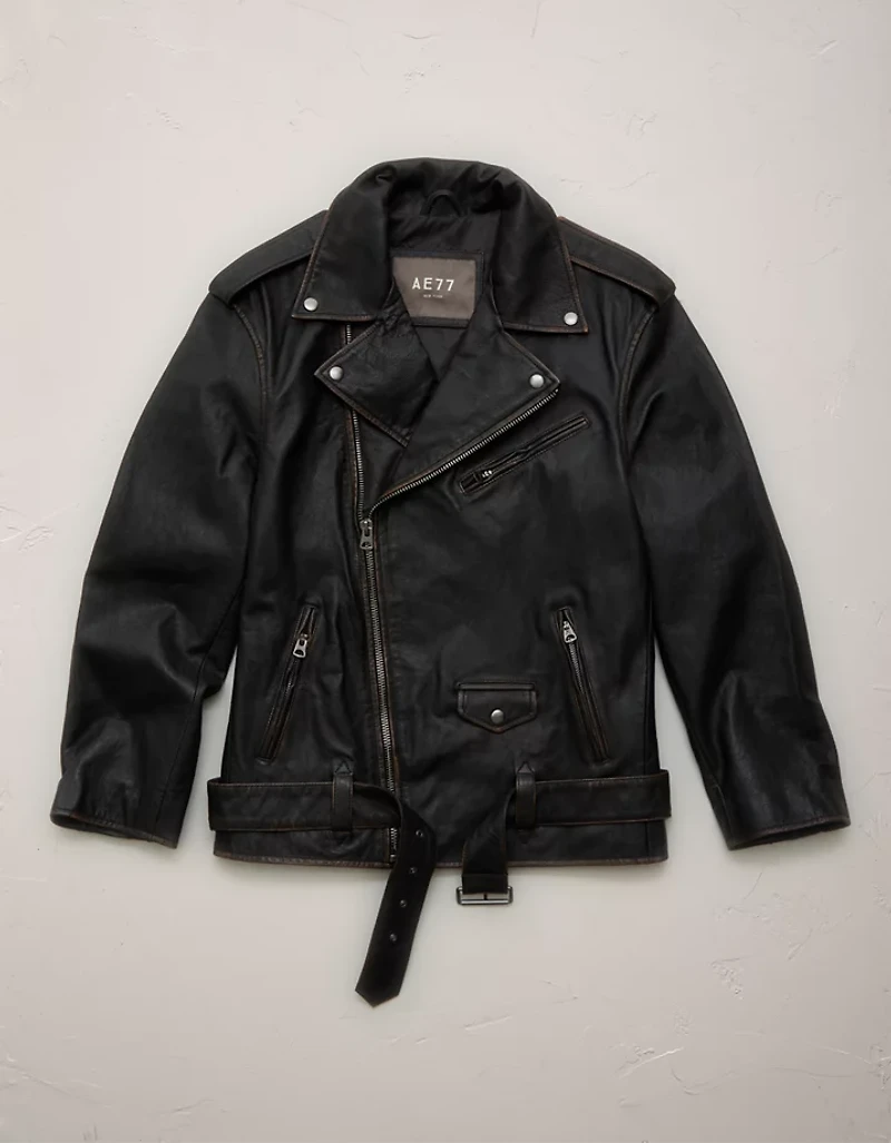 Inspirée des vestes de moto authentiques, celle-ci est confectionnée en cuir épais bicolore de qualité supérieure avec une coupe surdimensionnée.