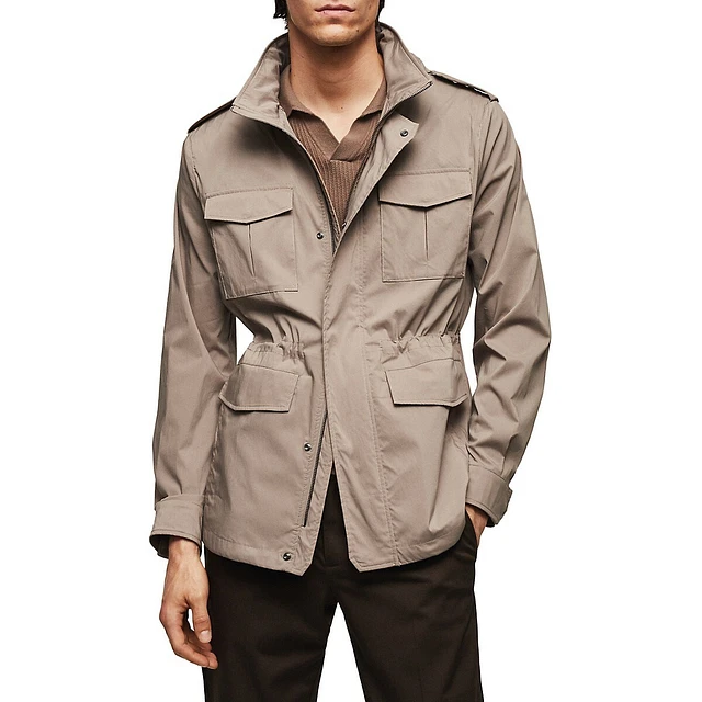 Veste militaire à col montant et jean semi-évasé à détail chaine