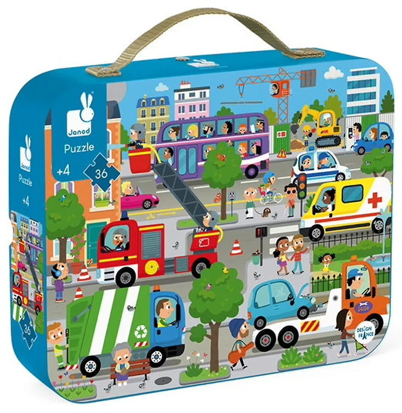 Votre enfant aime les puzzles ? Ce joli puzzle de 36 pièces va lui plaire à coup sûr ! Assemblez les pièces en carton du puzzle et reconstituez une magnifique fresque d'une grande ville haute en couleurs. Ludique et facile pour les enfants dès 4 ans, ce puzzle est un jeu qui aide à développer le sens de l'observation. Pour que le puzzle Janod soit éternel, retrouvez un poster à accrocher dans la chambre de votre petit. Une fois le puzzle City terminé, toutes les pièces pourront être rangés dans la jolie mallette, à emmener partout ! Découvrez les autres Puzzles de la marque Janod sur King Jouet.