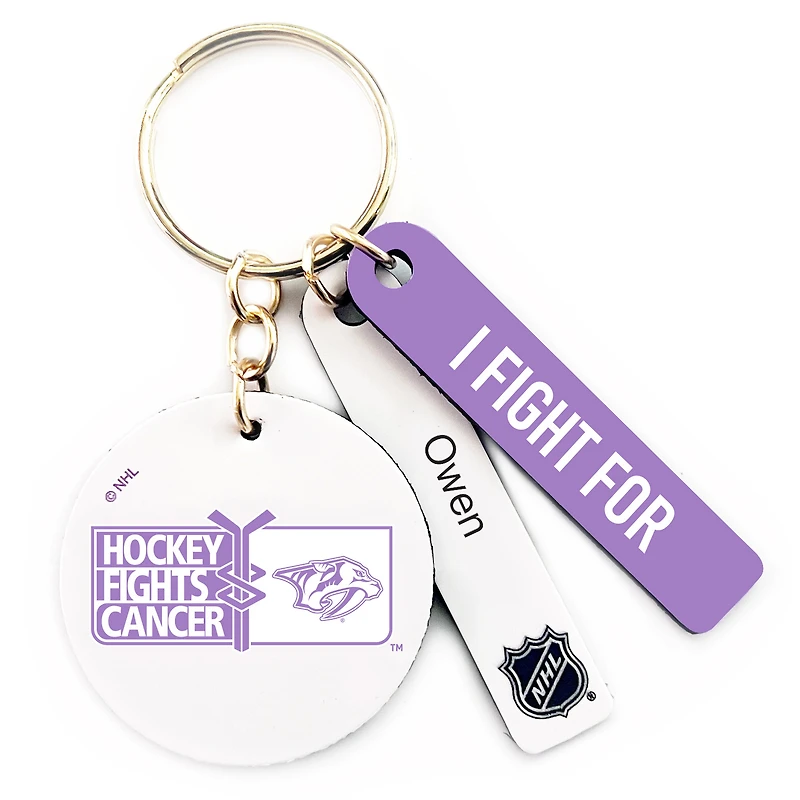 White Nashville Predators Hockey Fights Cancer Porte-clés ruban personnalisWhite Nashville Predators Hockey Fights Cancer Porte-clés ruban personnalis