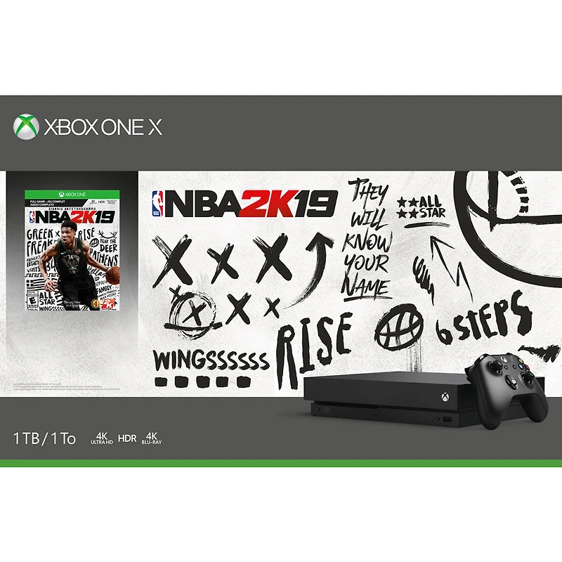 Xbox One X 1To NBA 2 K 19 Bundle et plongez dans l'excitation et la culture du basket-ball de la NBA en charge native de résolution 4 K et HDR. NBA 2K 19 célèbre ses 20 ans de redéfinir des jeux de sport : Commencez votre MyCAREER faire vous-même un nom et explorer votre monde ouvert " Voisinage ". Prendre le meilleur dans le monde sur le Xbox Live, le réseau de jeu plus rapide et plus fiable. Xbox un X présente 4K Ultra HD Blu-ray?, 4 K streaming vidéo et audio haut de gamme et l'essai de Xbox jeu Pass 1 mois inclus vous donne instantanément accès à plus de 100 jeux. Avec des centaines de jeux Xbox un X amélioré, jeu de 4K vrai immersive et 40 % plus de puissance que n'importe quelle autre console, il y a jamais eu de meilleur moment pour le jeu avec Xbox un X. (multijoueur en ligne nécessite Xbox Live Gold, vendu séparément, essai de 14 jours inclus).
