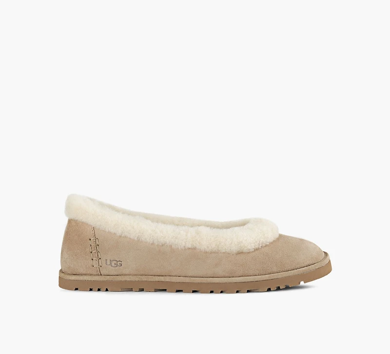 S’il y a une tendance qui domine l’air du temps en ce moment, c’est bien le balletcore – il n’est donc pas surprenant que le géant de la chaussure UGG ait décidé de s’y engouffrer avec la ballerine Zora. Dotée d’une semelle plate rembourrée pour un confort optimal, cette silhouette minimaliste est bordée de la célèbre doublure en laine chaude de la marque pour une finition douillette. On considérera le talon estampillé du logo comme le sceau d’approbation de la maison.