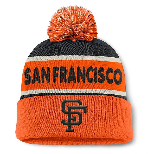 Bonnet en tricot à revers avec pompon Fanatics noir/orange pour homme des San Francisco Giants Heritage