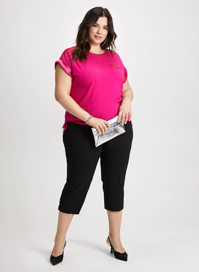 T-shirt à manches raglan ajourées et jean avec ourlet à billes
