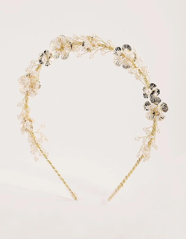 Bandeau à fleurs argentées Silver Diamante Tie Halo