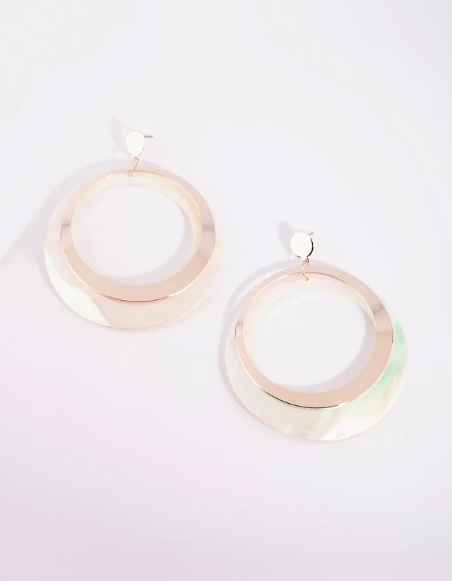 Boucles d’oreilles tombantes en forme géométrique en or et en coquillage