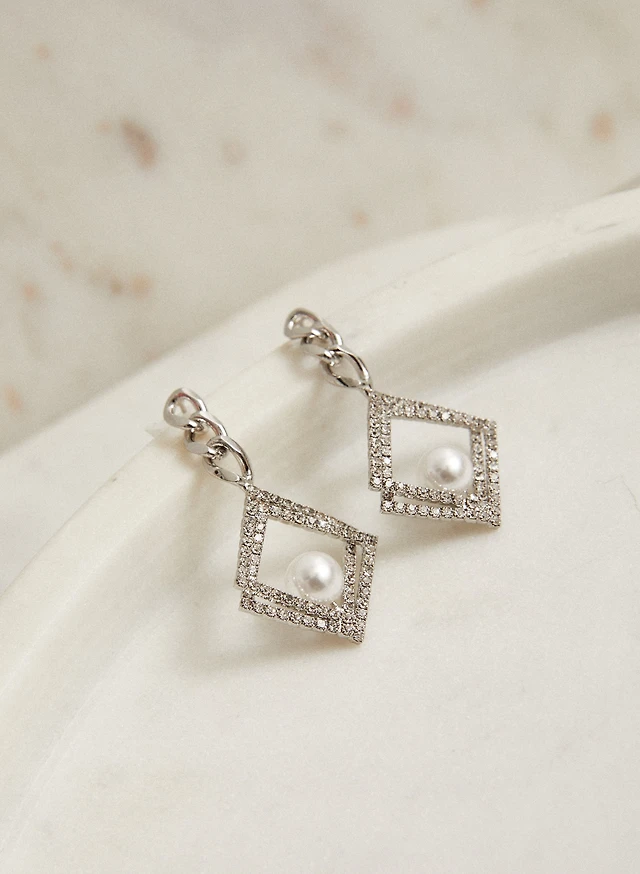 Robe à détails en tulle et boucles d'oreilles à cristaux
