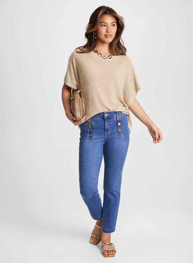 Tunique boutonnée et capri à jambe étroite