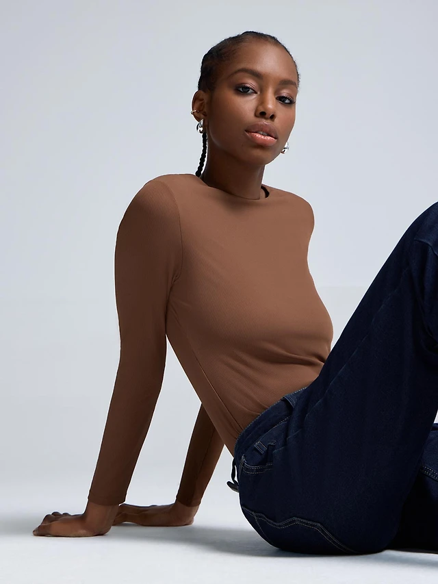 Chandail court en tricot côtelé à encolure V