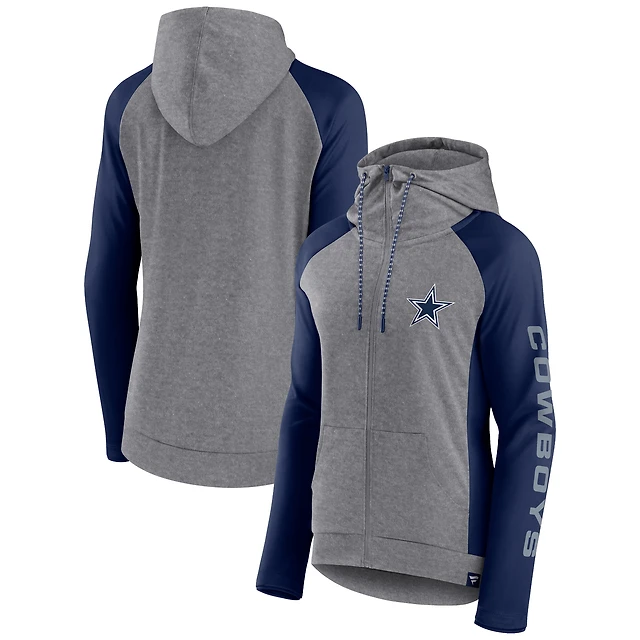 Sweat à capuche entièrement zippé Fanatics gris/marine Dallas Cowboys Blind Side Raglan pour femmes