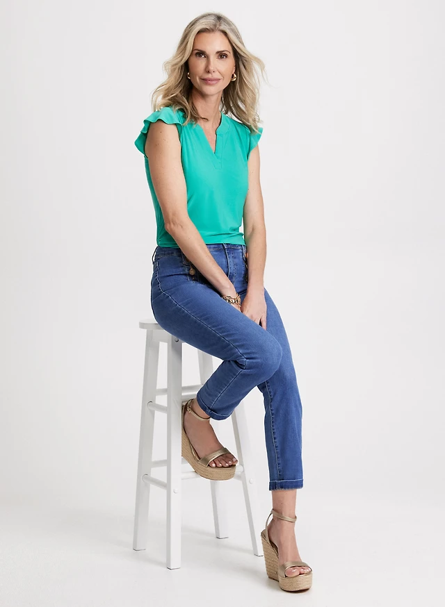 T-shirt à volants et jean droit