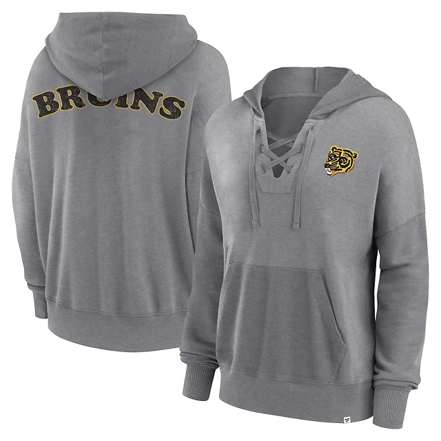Sweat à capuche vintage lacets Fanatics Heather Grey Boston Bruins Heritage pour femmes