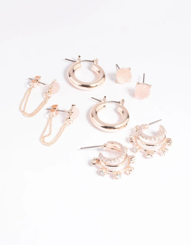 Boucles d’oreilles Rose Gold Pearl & Hoop Pack de 8