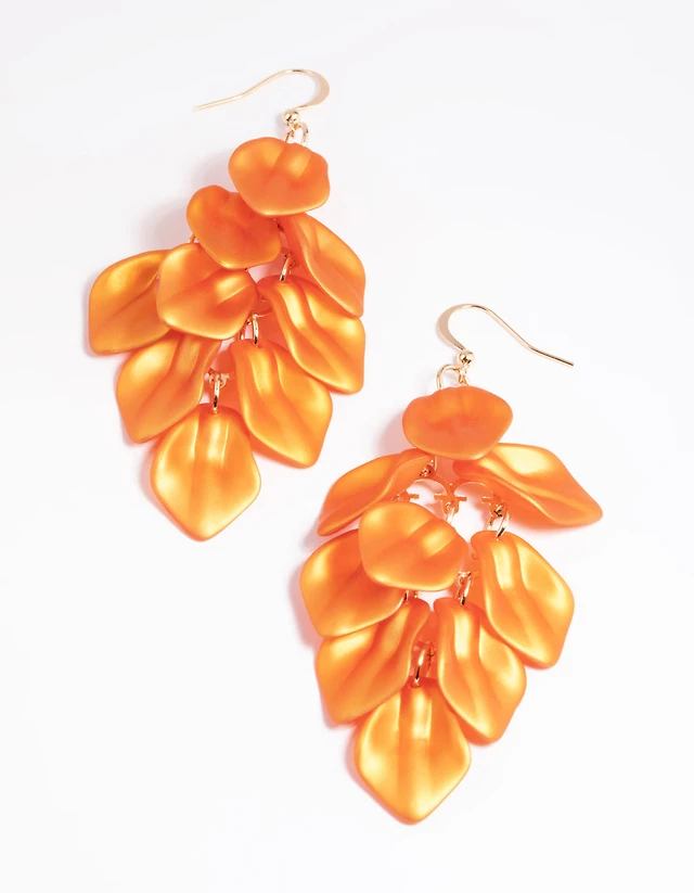 Boucles d’oreilles pendantes à pétales nacrés orange