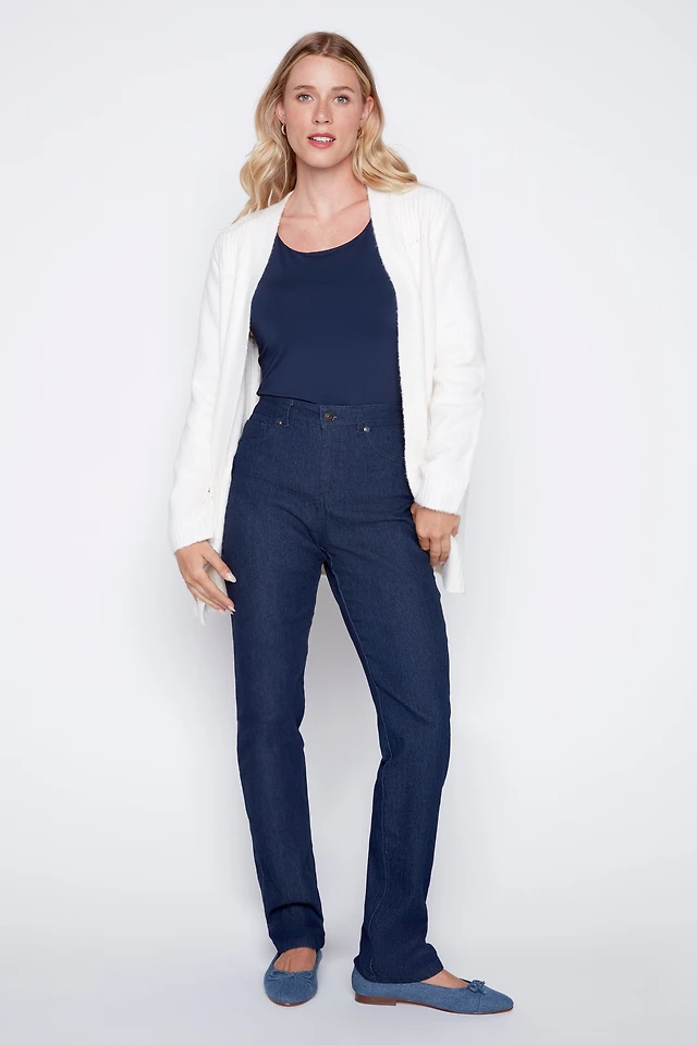 Le jean en denim extensible à jambe semi-évasées