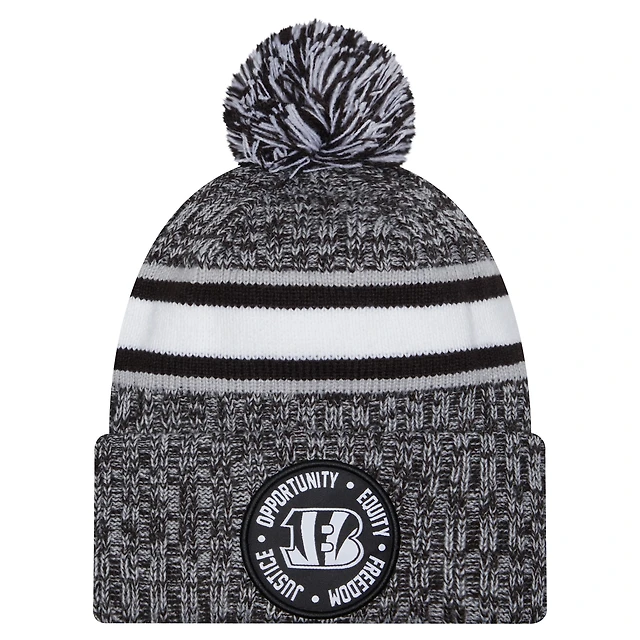 Bonnet en tricot à revers Inspire Change New Era noir des Bengals de Cincinnati pour hommes avec pompon