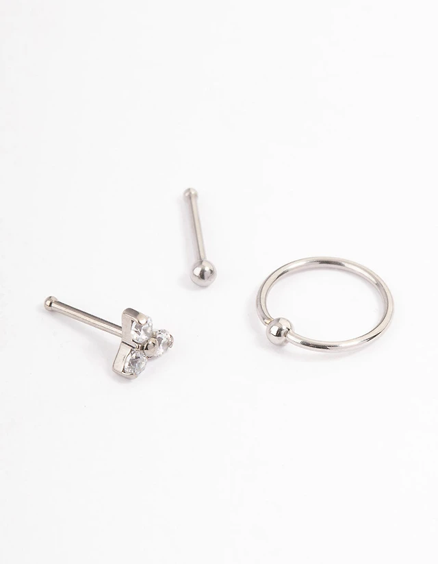 Pack d’anneaux de nez en fleur de zircone cubique en acier chirurgical