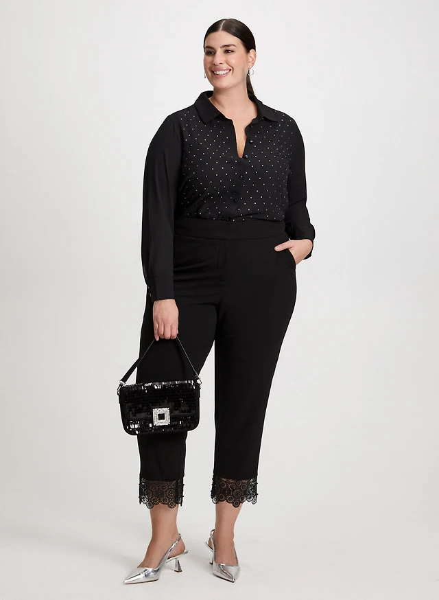 Cardigan avec lien à nouer et jean à noeud, sequins et fente