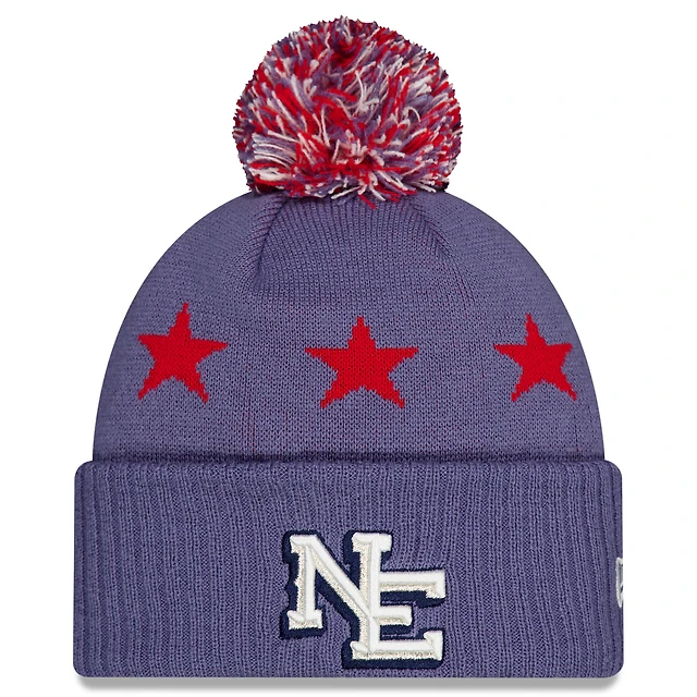 Bonnet en tricot à revers et pompon pour homme New Era Meadow Blue New England Patriots Collection 2025 Rivalries