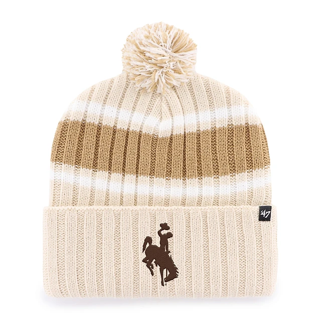 Bonnet en tricot à revers et pompon Top of the World pour homme, gris chiné, Wyoming Cowboys