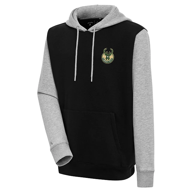 Sweat à capuche colorblock Victory des Milwaukee Bucks pour homme, noir/gris chiné, Antigua