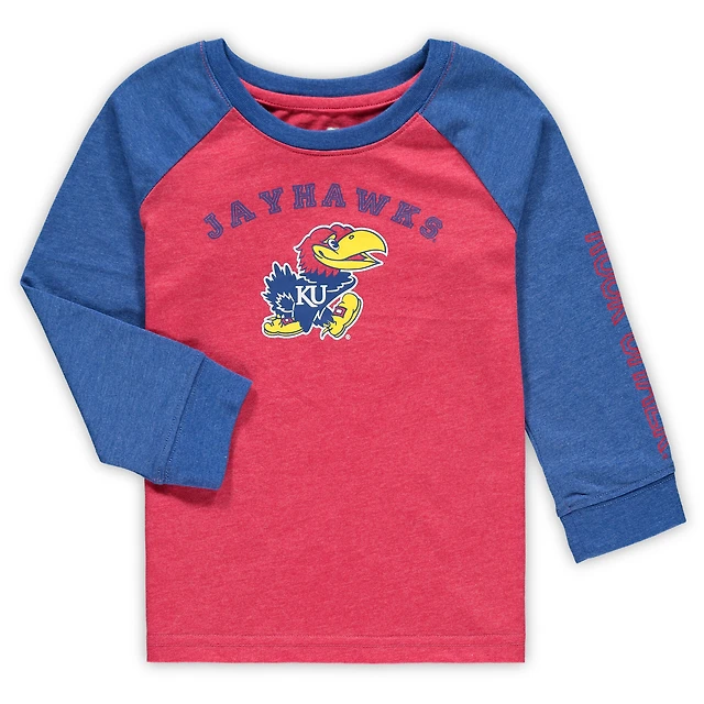 T-shirt raglan à manches longues Colosseum rouge chiné Kansas Jayhawks pour tout-petit