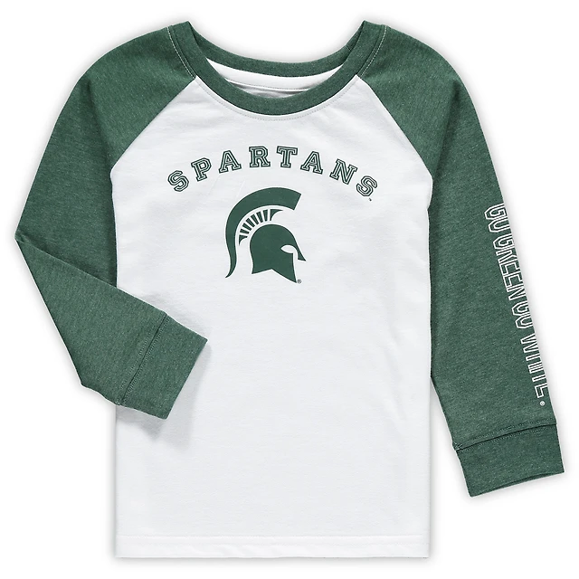 T-shirt raglan à manches longues Colosseum blanc chiné Michigan State Spartans pour tout-petit