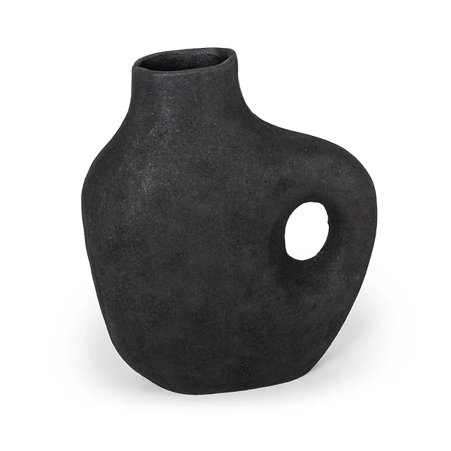 Grand vase de table décoratif en métal de 12 po « Calyx » - Noir