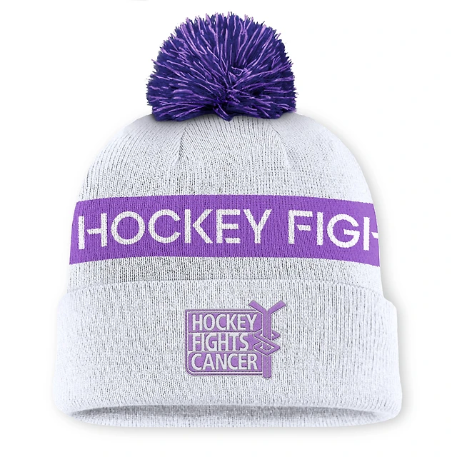 Bonnet en tricot à revers avec pompon et logo NHL pour hommes Fanatics blanc Hockey Fights Cancer