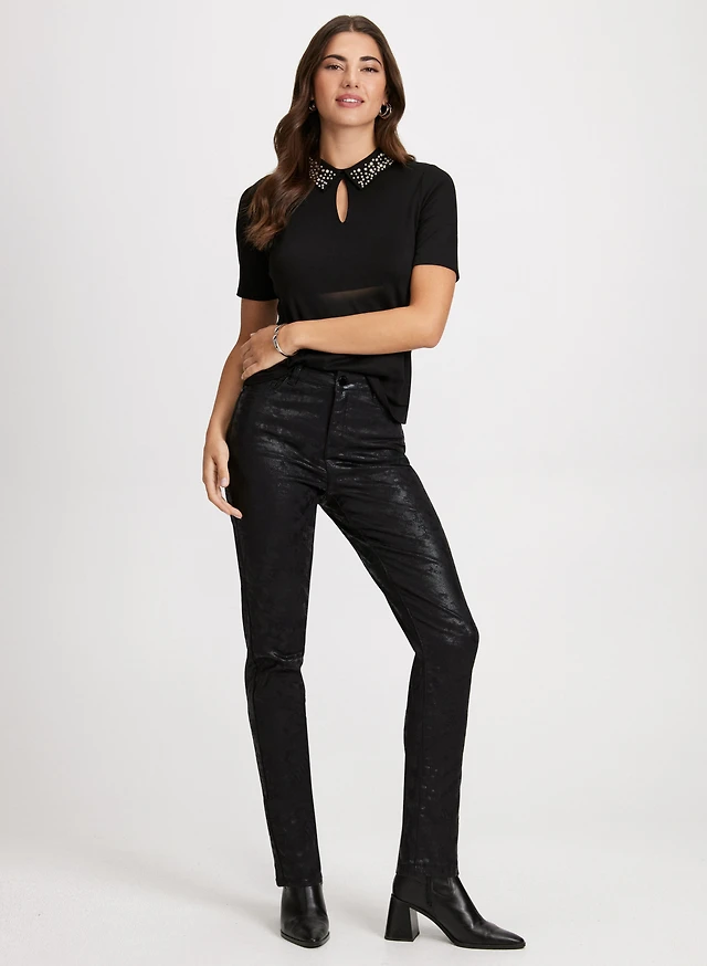 Haut à manches courtes et col perlé et jean à enfiler à jambe droite