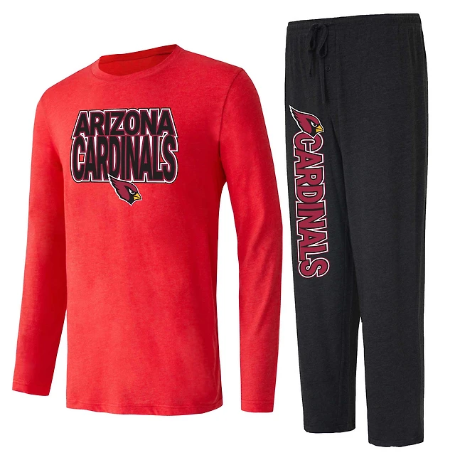 Ensemble de nuit pour homme Concepts Sport Black/Cardinal Arizona Cardinals avec haut à manches longues et pantalon Meter