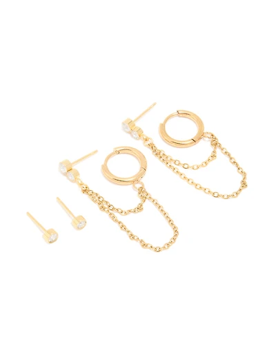Boucles d’oreilles en zircone cubique Huggie & Hoop plaqués or en pack de 2