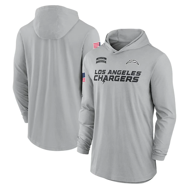 Sweat à capuche léger manches longues et Nike gris Los Angeles Chargers 2024 Salute to Service pour homme